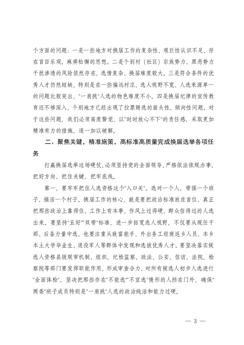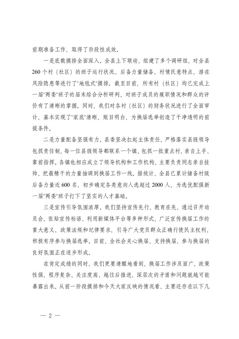 标题:在全县村社区两委换届工作座谈会部署会调度会上的讲话