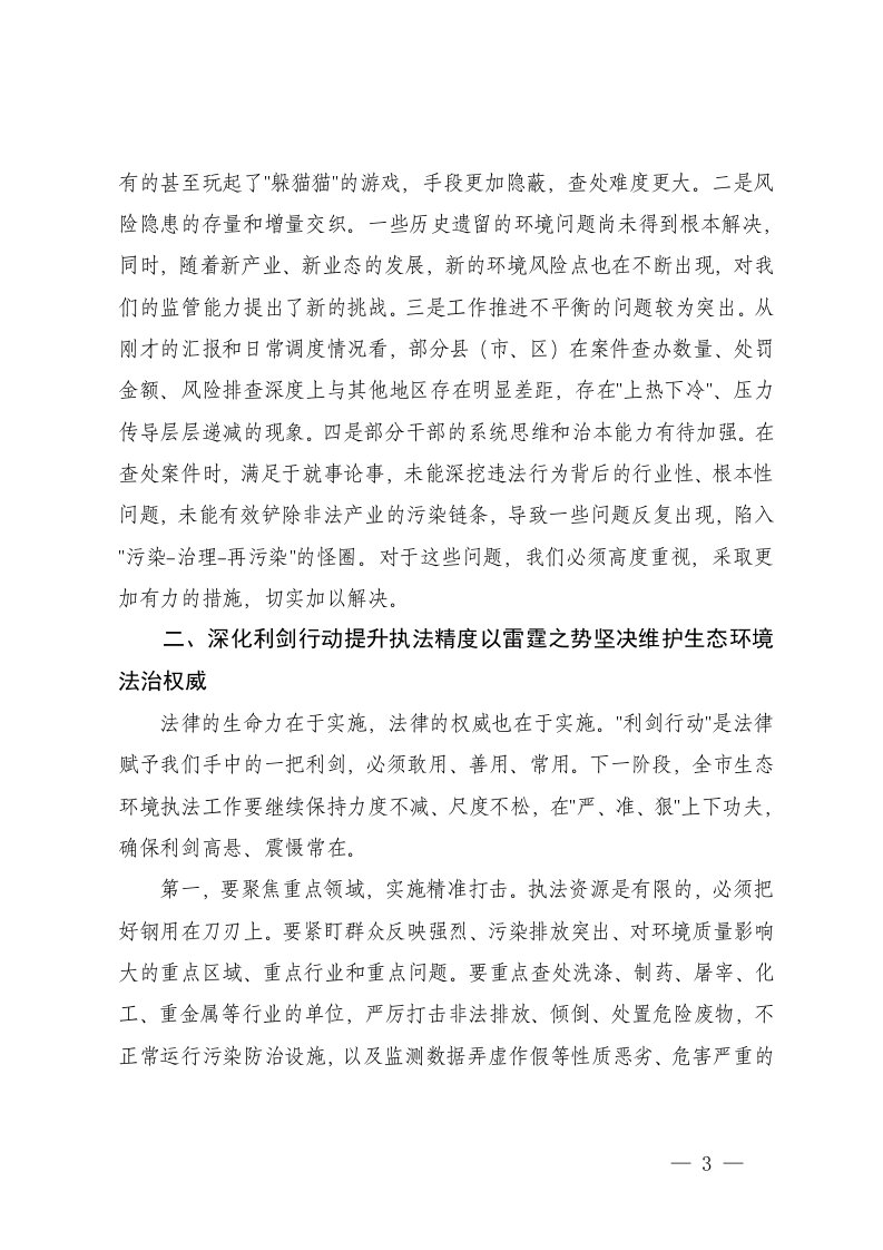 在市生态环境局全市生态环境违法行为查处利剑行动推进会暨风险隐患排查整治工作调度会上的讲话在市生态环境局分局专题会议上的讲话