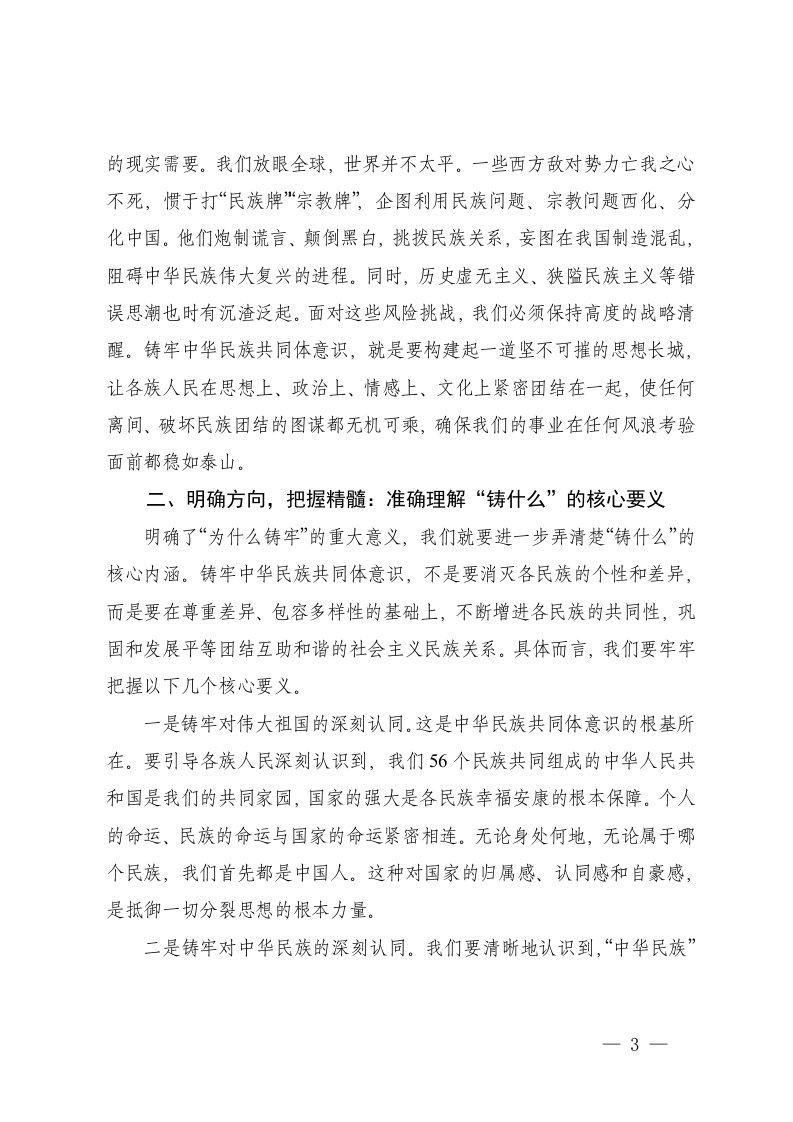 标题:在县年轻干部铸牢中华民族共同体意识专题培训班上的党课报告讲稿