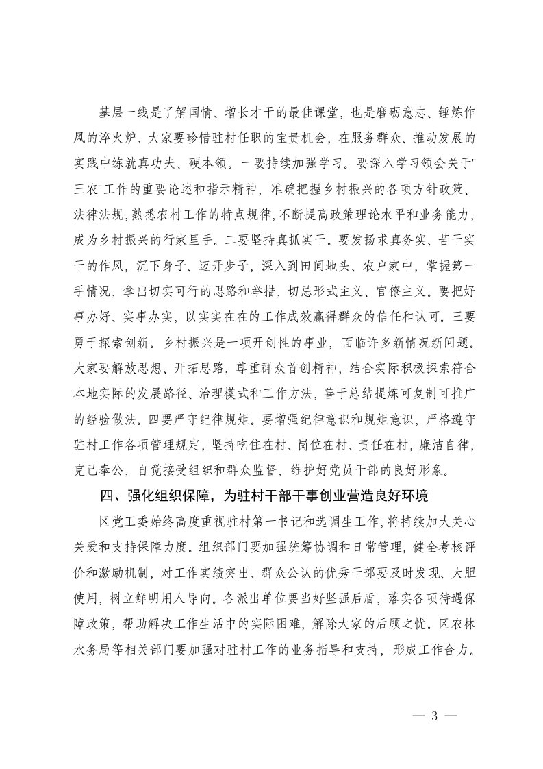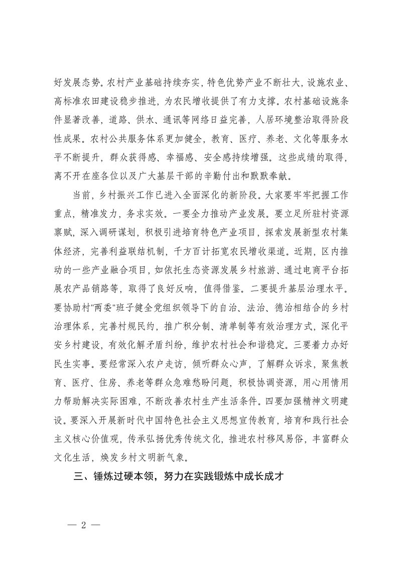 标题:在乡村振兴驻村第一书记和到村任职选调生座谈会上的讲话在乡村振兴驻村工作座谈会上的讲话