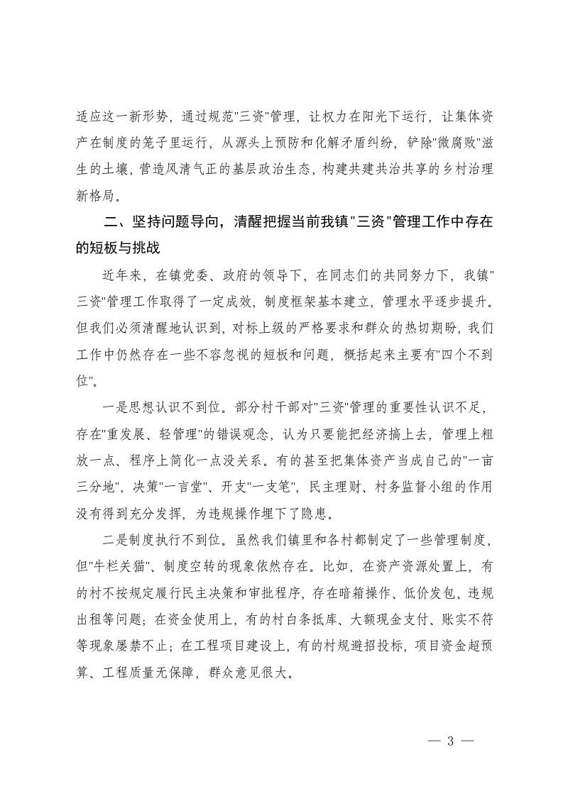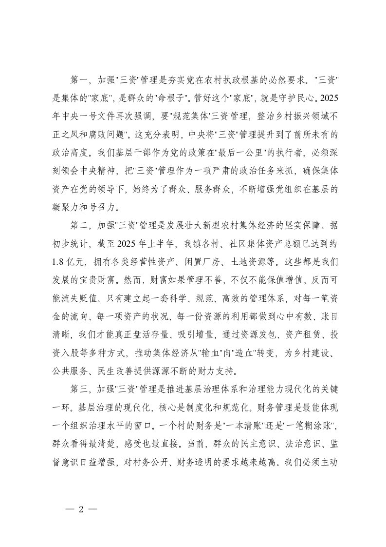 标题:在乡镇2025年度村集体三资突出问题专项整治推进会议上的讲话三资及财务管理专题培训会上的讲话