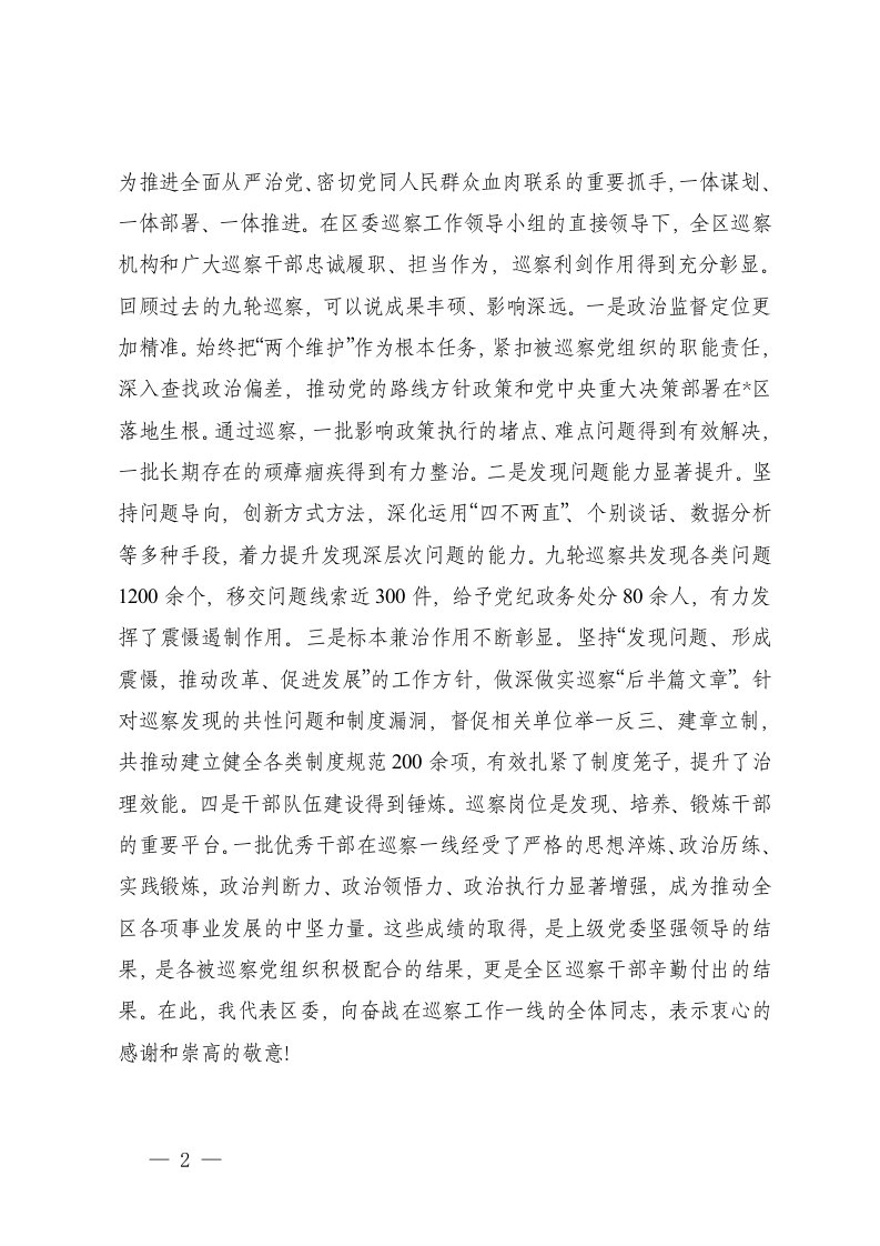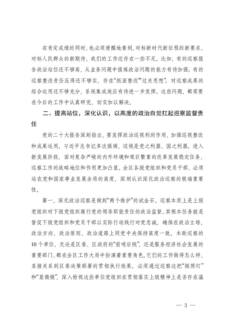 标题:4篇在2025年全区巡察工作会议暨区委巡察动员部署会上的讲话