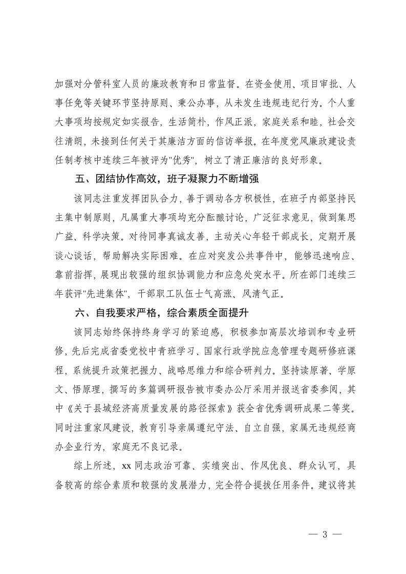 标题:5篇2025年关于拟提拔担任副科级职务的同志现实表现材料现任局办公室主任