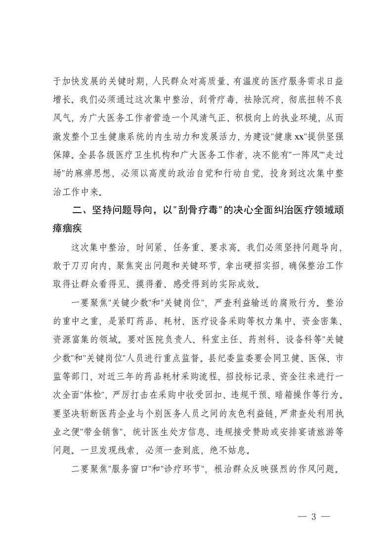 工作,讲话,卫生,医疗卫生2025年在全县医疗卫生机构医德医风问题集中整治工作动员部署会上的讲话工作,讲话,卫生,医疗卫生2025年在全县医疗卫生机构医德医风问题集中整治工作动员部署会上的讲话
