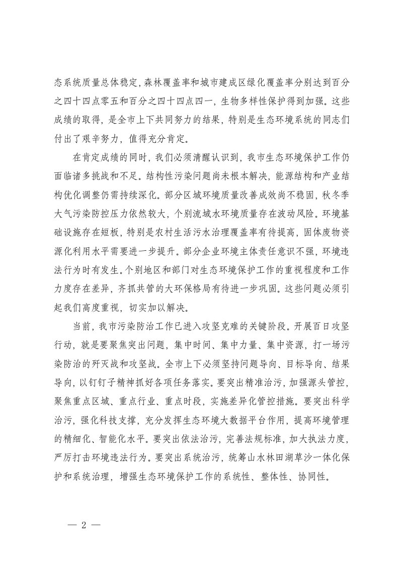 标题:2025年在市生态环境局全市污染防治百日攻坚座谈会上的讲话