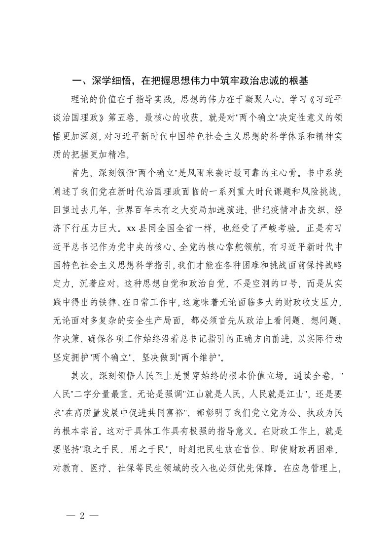 标题:2025年在县委理论学习中心组上关于治国理政第五卷的研讨发言及主持词
