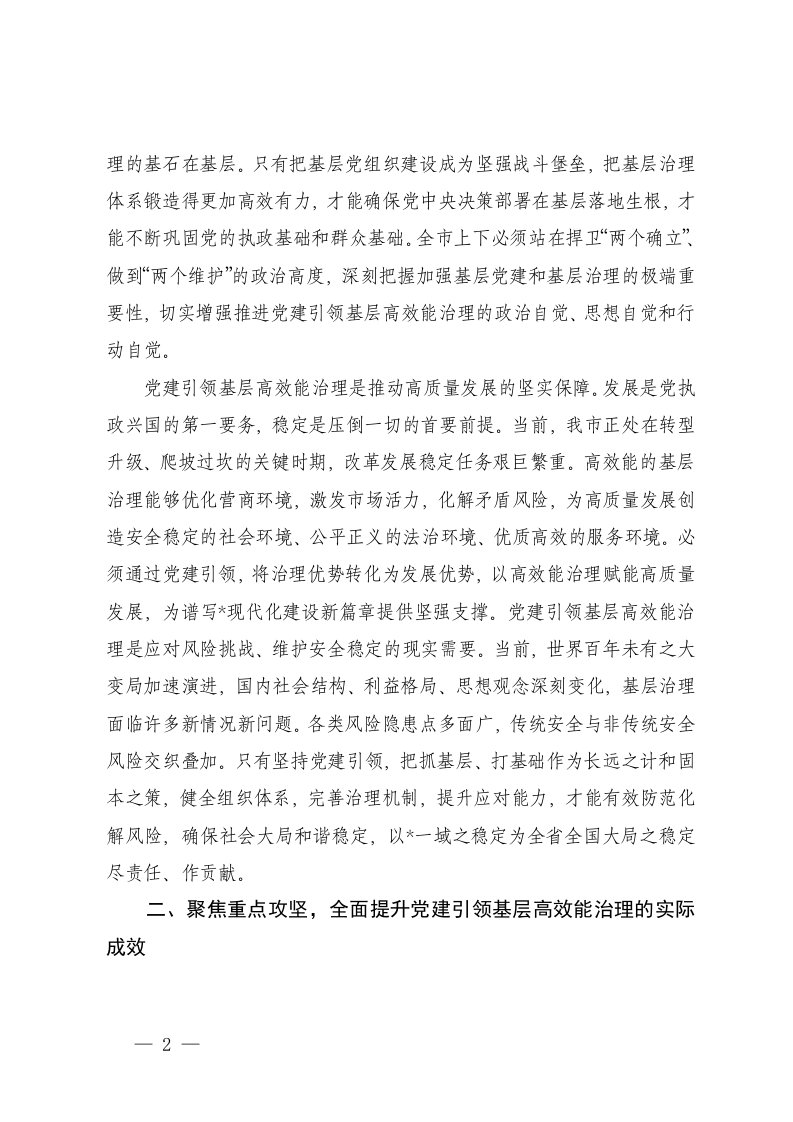 标题:汇编在2025年市委党建引领基层高效能治理工作推进会上的讲话