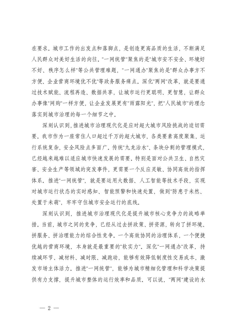 在一网统管一网通办深化改革暨城市治理现代化推进会上的讲话深化党建引领基层治理的研讨发言
