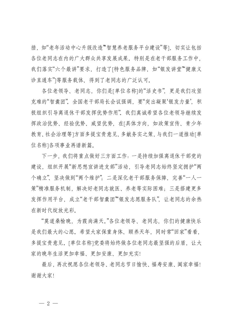 领导讲话,主持词,座谈,讲话,重阳节,座谈会,老干部2篇2025年重阳节老干部座谈会主持词及领导讲话领导讲话,主持词,座谈,讲话,重阳节,座谈会,老干部2篇2025年重阳节老干部座谈会主持词及领导讲话