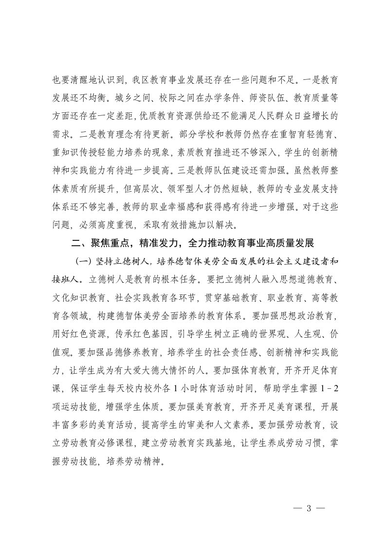 标题:2篇区委书记在全区2025年教育工作会议暨第41个教师节庆祝大会上的讲话