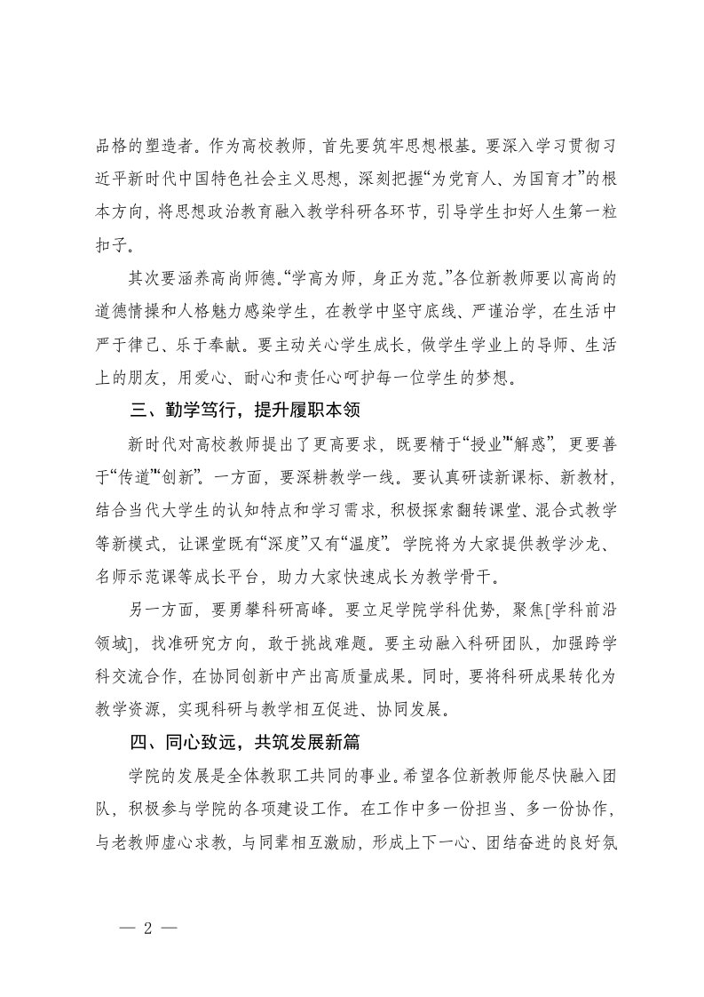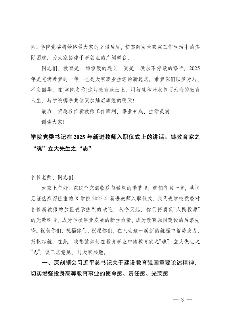 标题:2篇学院党委书记在2025年新进教师入职仪式上的讲话