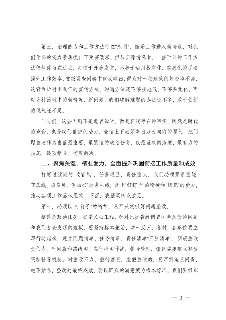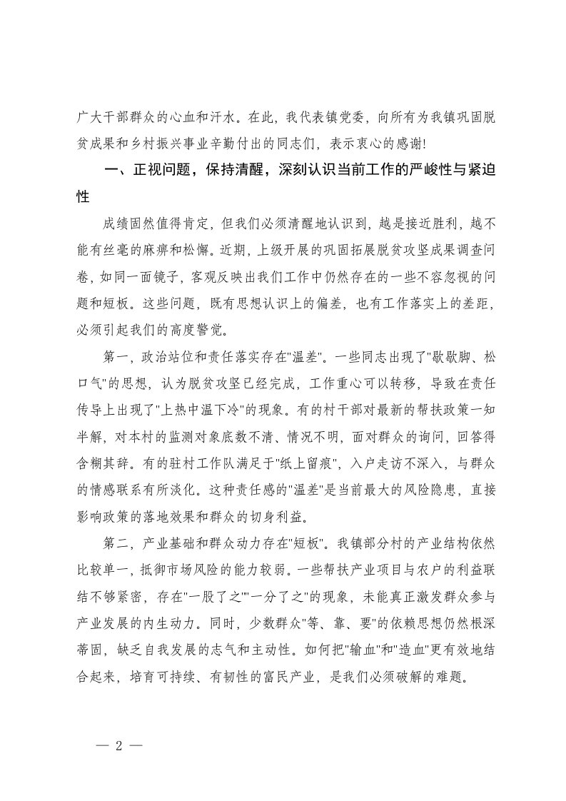 标题:2篇在全镇巩固拓展脱贫攻坚成果同乡村振兴有效衔接工作推进会上的讲话