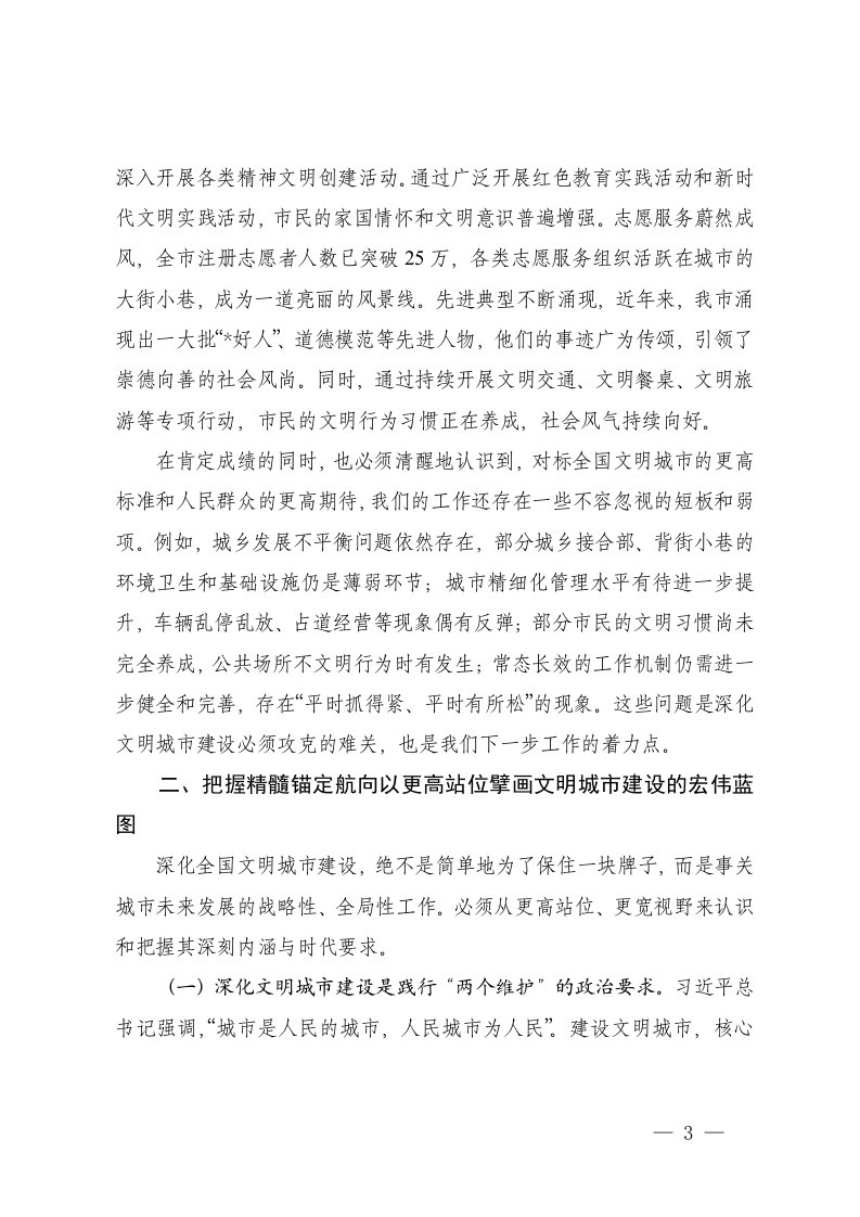 标题:在2025年全市深化全国文明城市建设工作会上的讲话创建全国文明城市自查自评报告