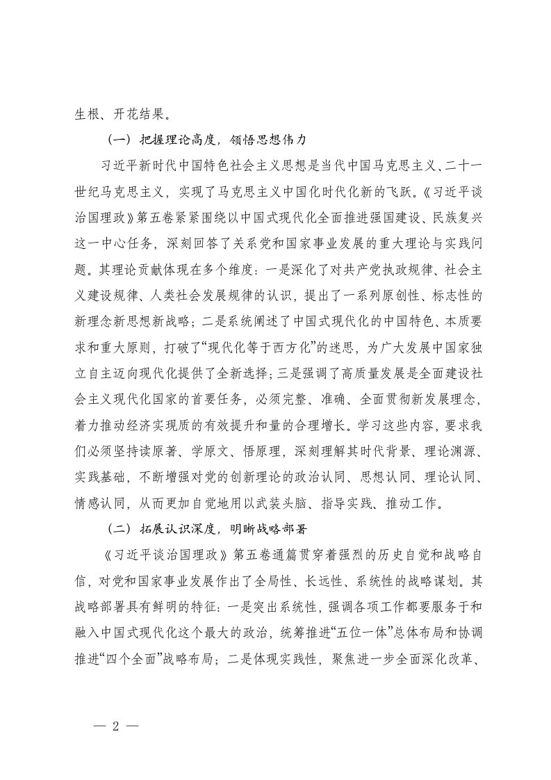 在党委理论学习中心组学习习近平谈治国理政第五卷的总结讲话及研讨交流发言