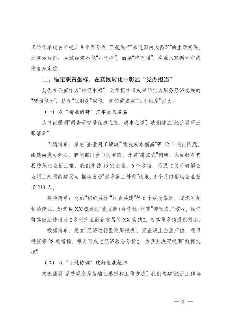标题:2025年10月办公室主任学习习近平经济文选研讨发言材料