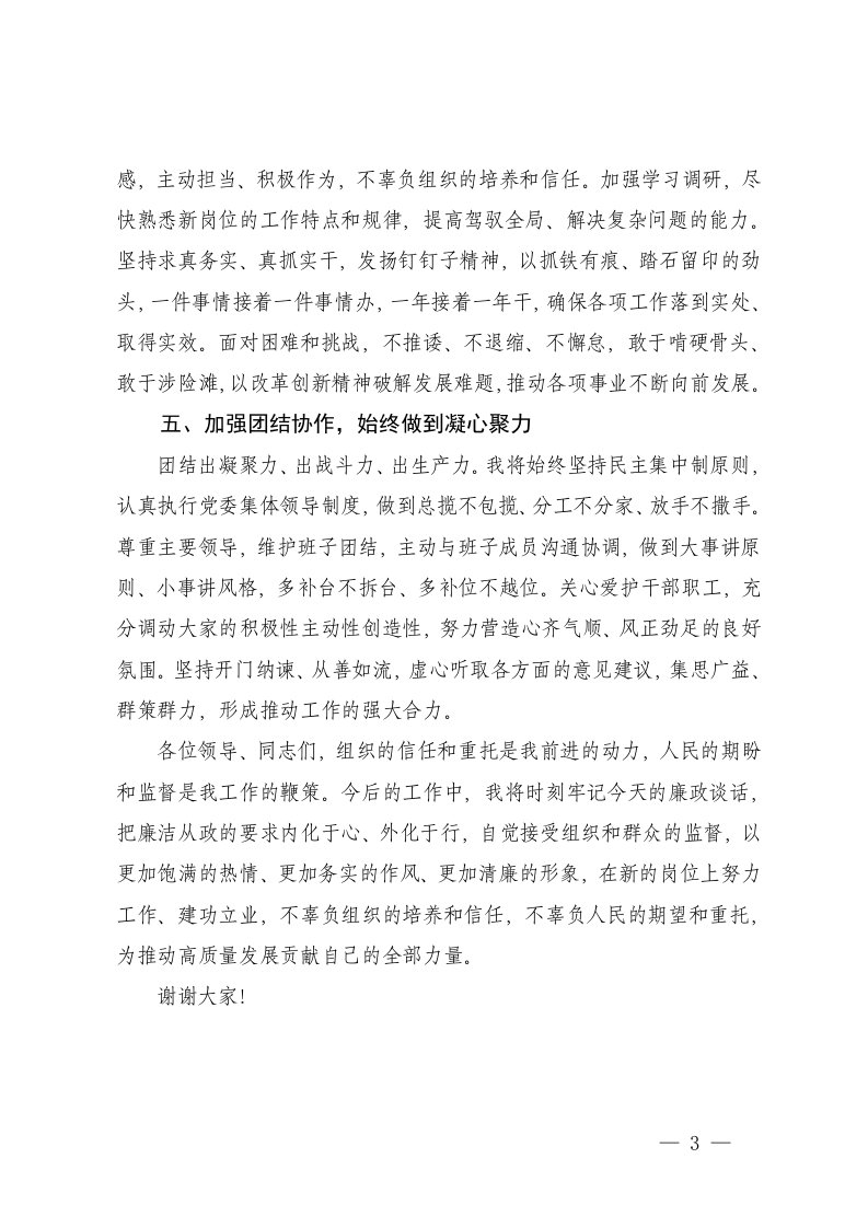 标题:2025年新任职干部任前廉政谈话表态发言在接受任前廉政谈话后的表态发言