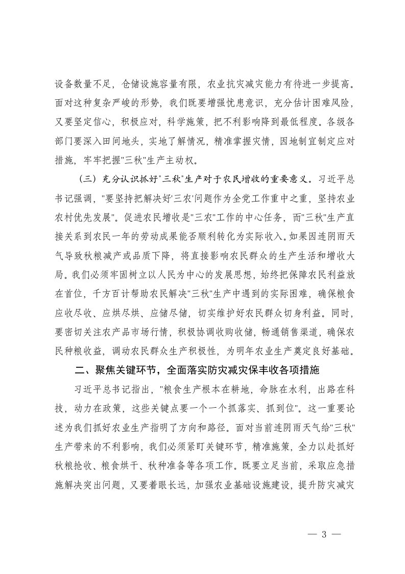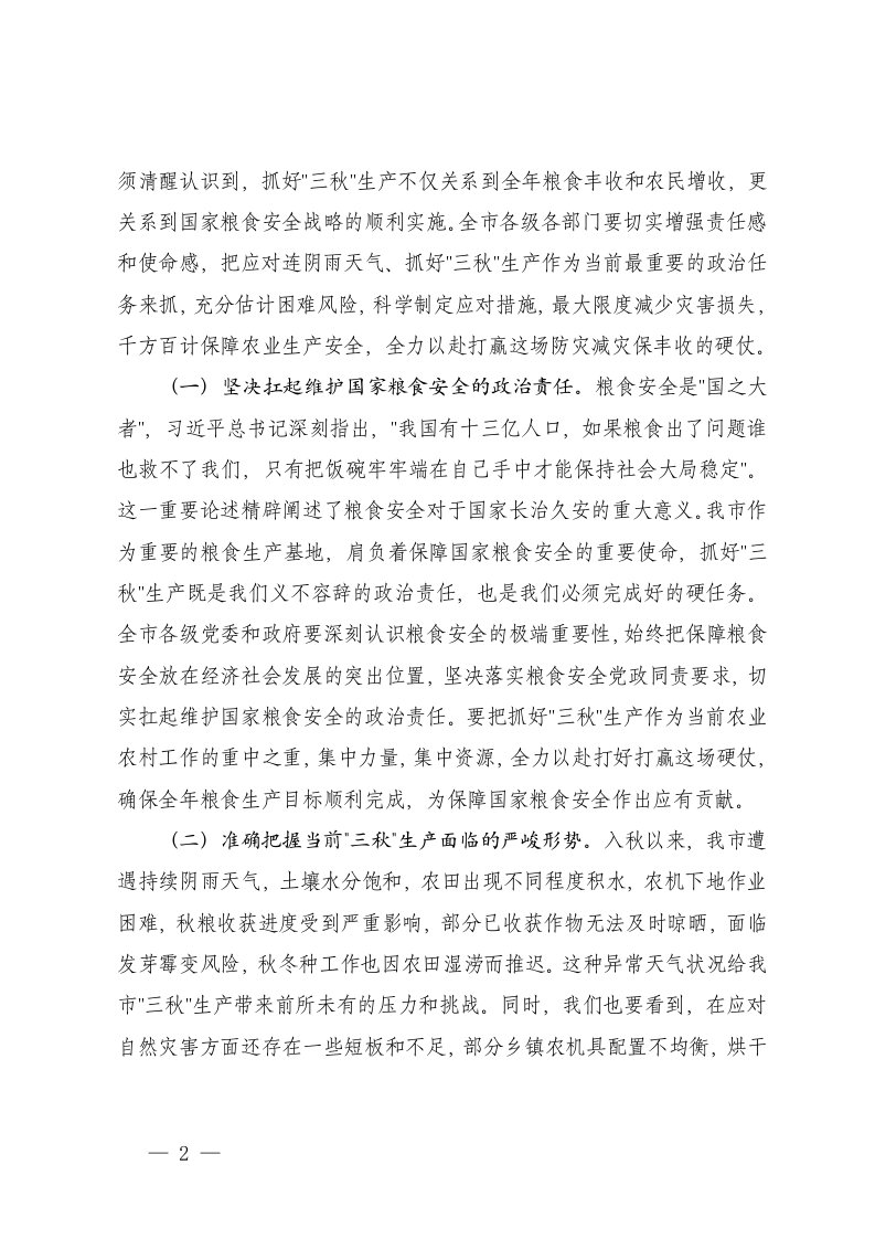 标题:2025年在全市应对连续阴雨天气三秋生产工作视频会议上的讲话