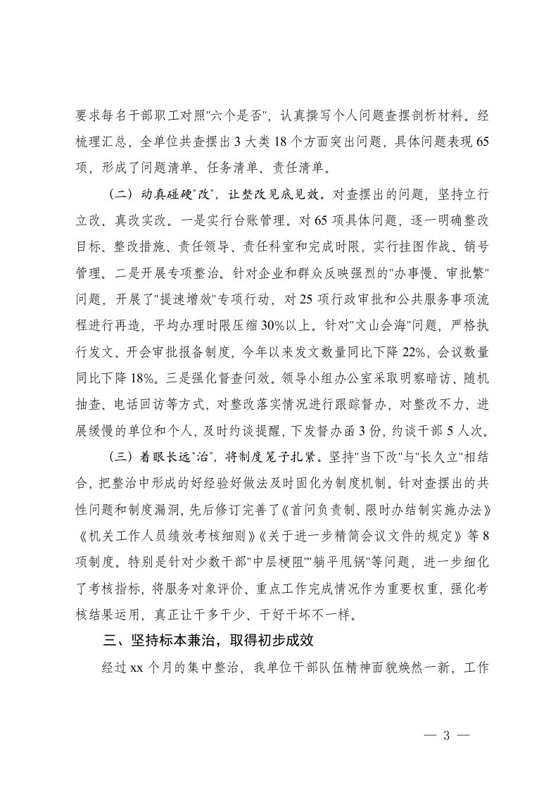 标题:领导干部个人政治建设自评报告单位作风建设集中整治情况报告