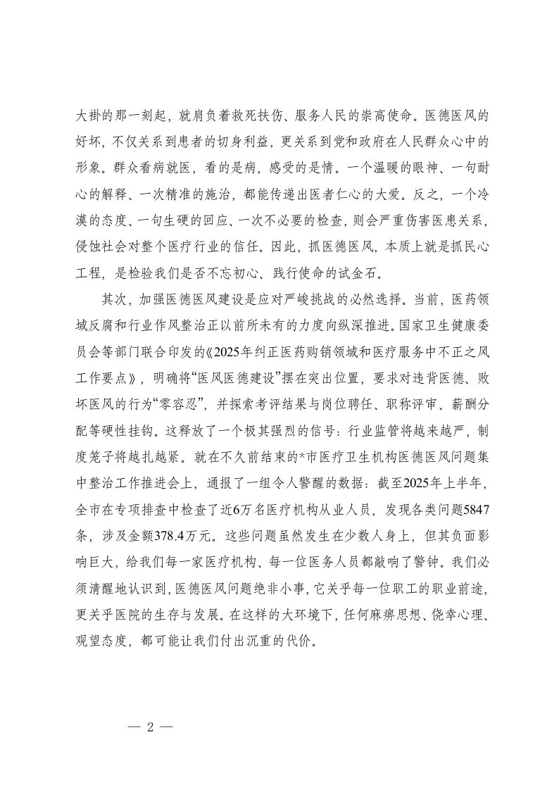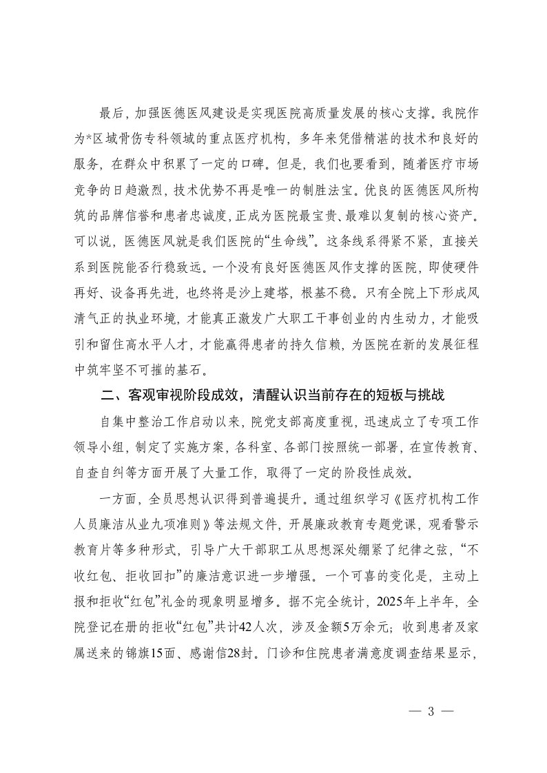 在2025年医院分院医德医风集中整治工作推进会上的讲话卫健系统医德医风暨医疗安全警示教育大会上的讲话