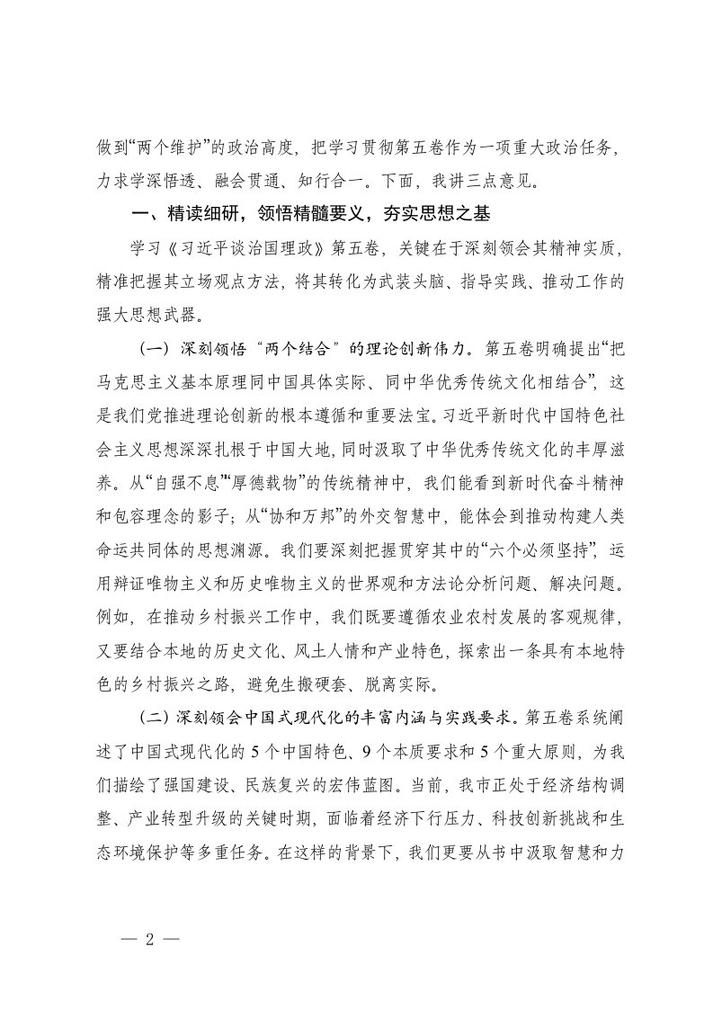在局党组理论学习中心组集体学习习近平谈治国理政第五卷交流发言第五卷的总结讲话