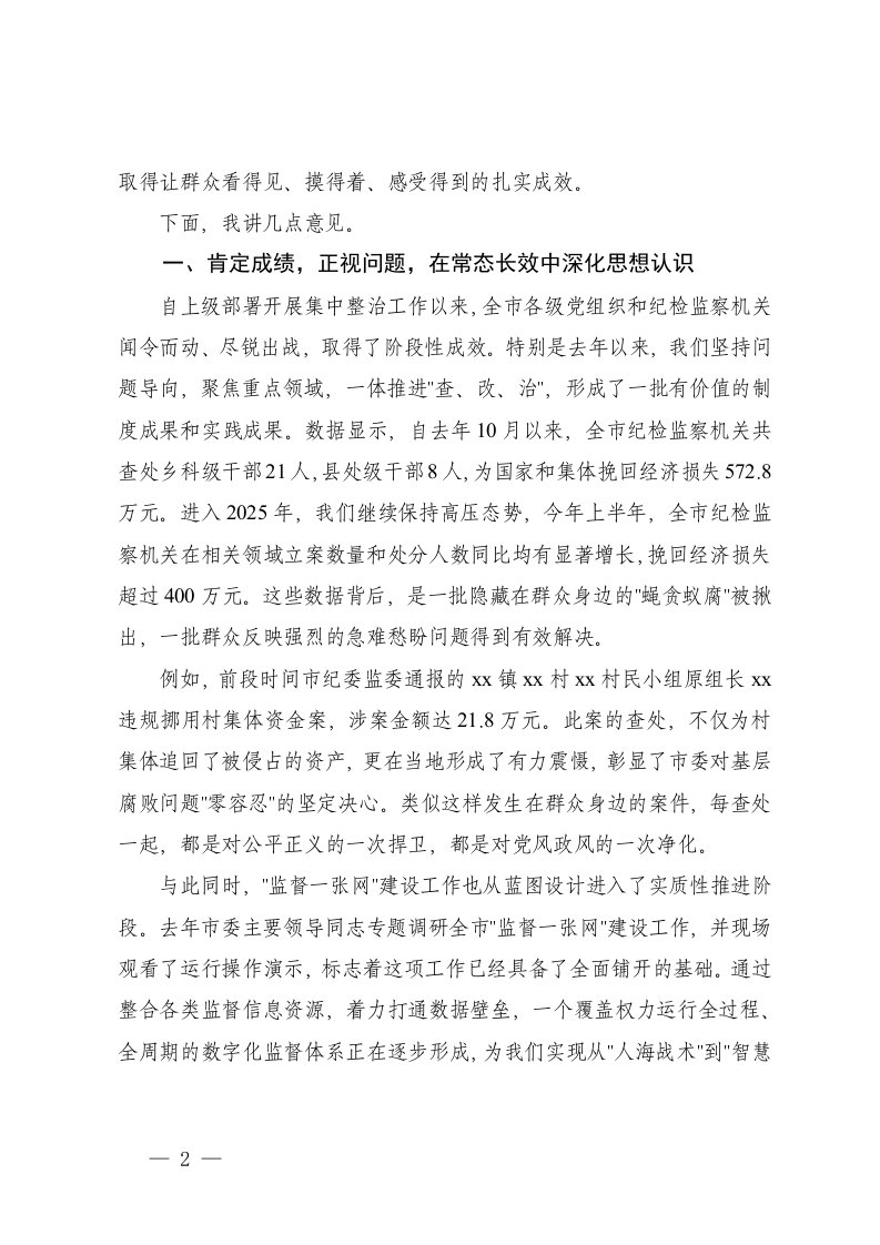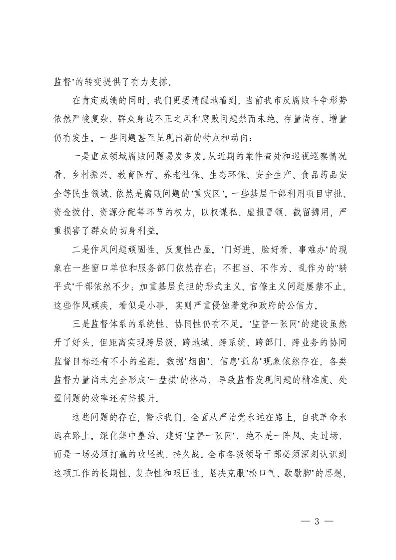 标题:在市集中整治群众身边不正之风和腐败问题暨三大突击战工作推进会上的讲话监督一张网建设推进会上的讲话