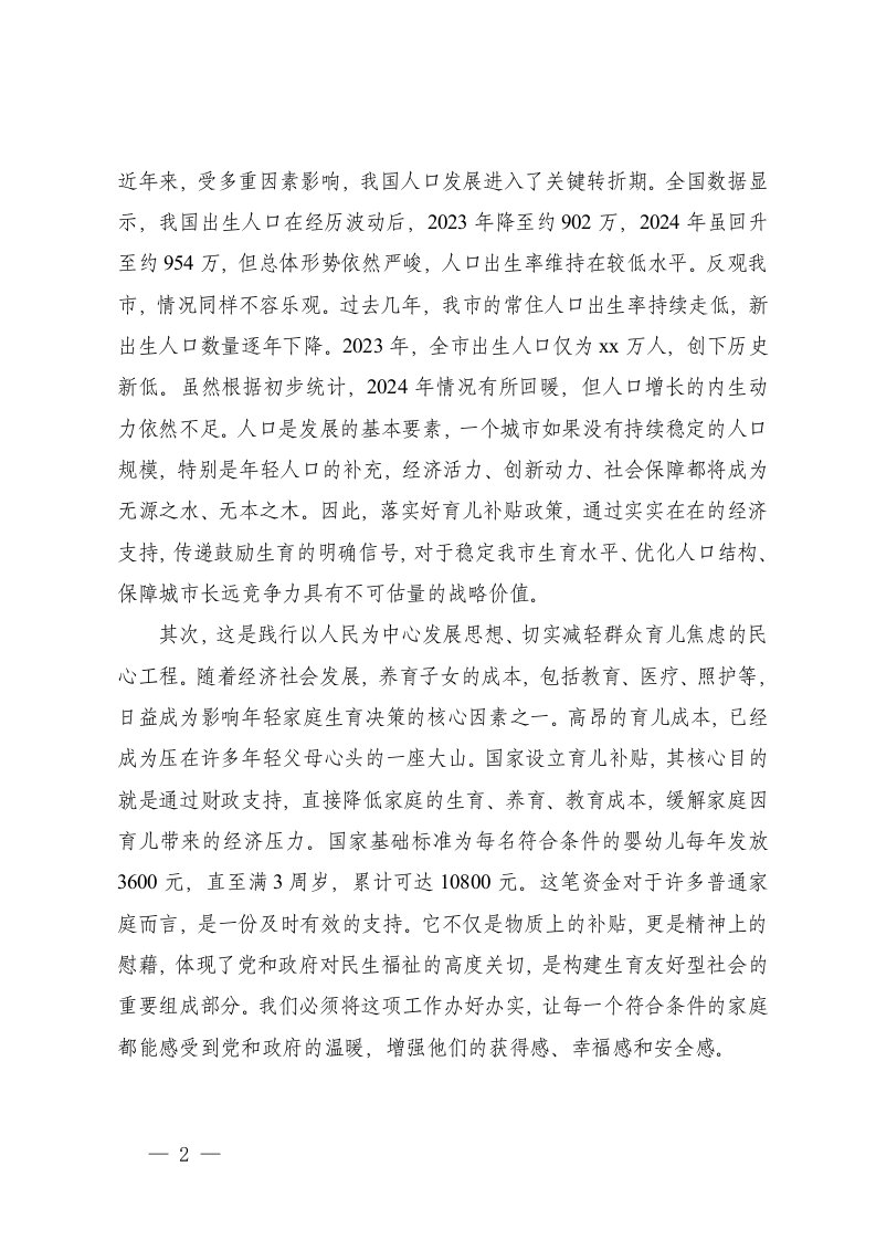 标题:镇关于2025年度育儿补贴摸底登记工作的总结报告育儿补贴政策全面落实工作推进会上的讲话