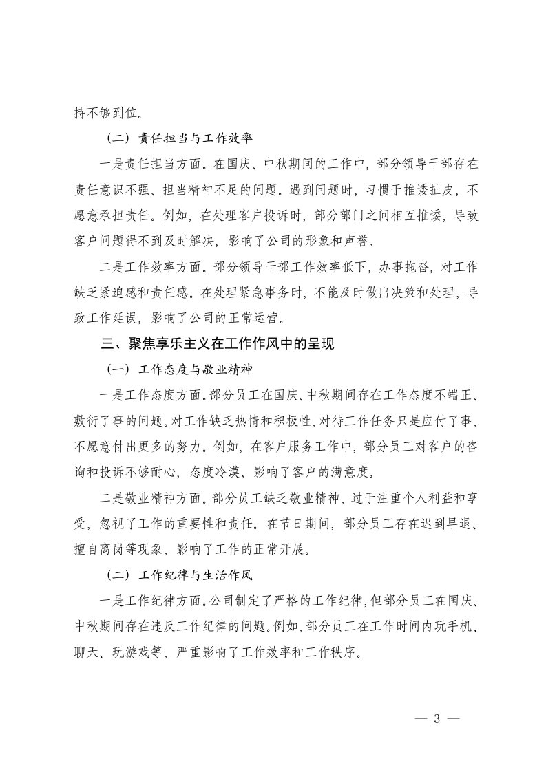 标题:3篇公司2025年国庆中秋期间四风问题自查自纠情况报告