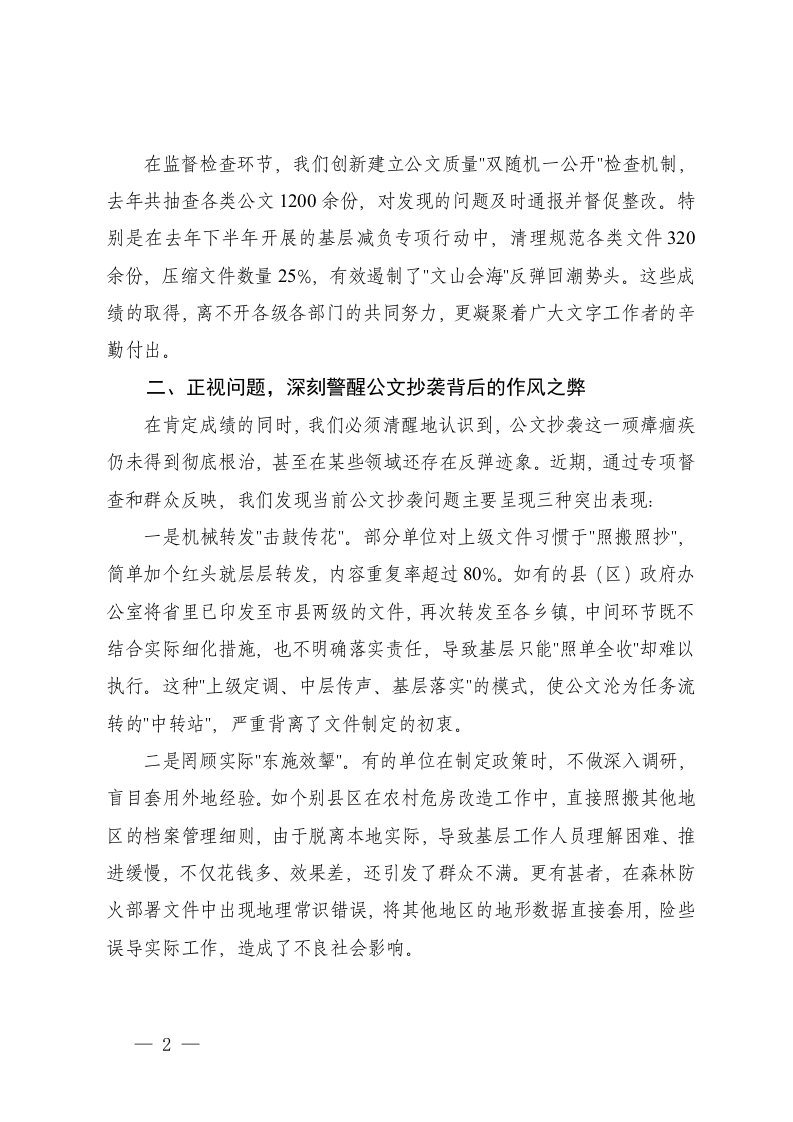 标题:2025年市委书记在公文抄袭问题专项整治工作会议上的讲话