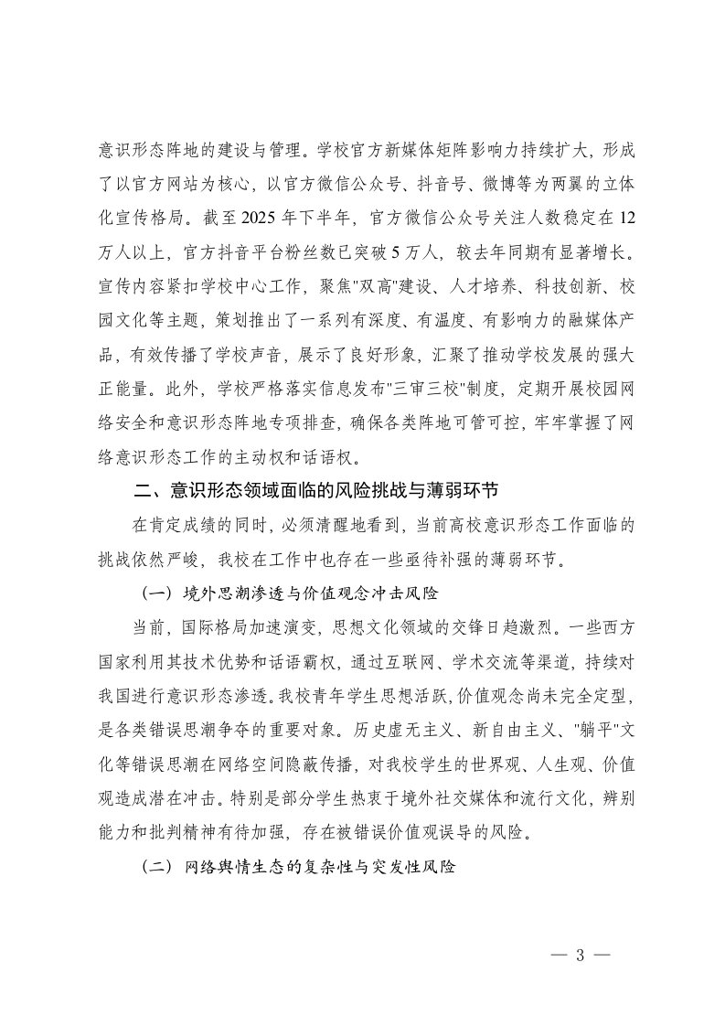 标题:大学党委关于学校意识形态领域形势总结2025年上半年意识形态工作总结