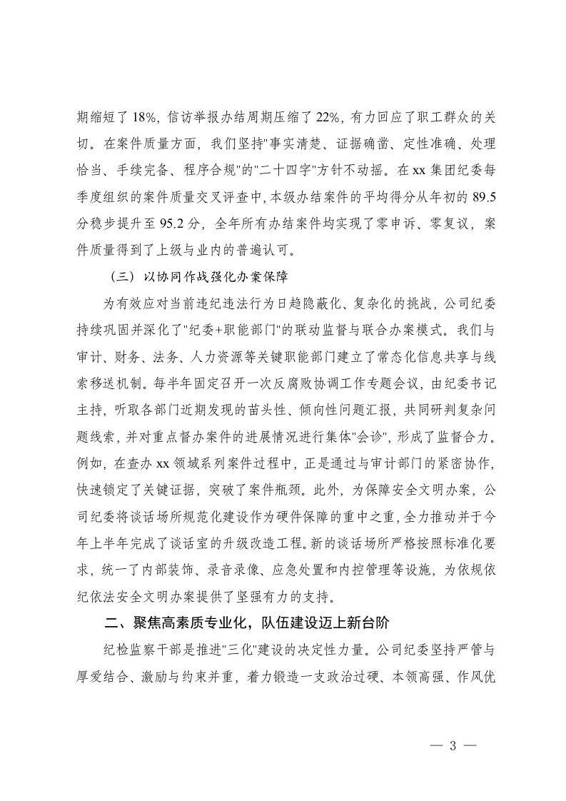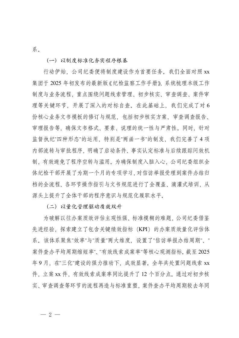 公司纪委2025年度纪检监察工作规范化法治化正规化建设年行动总结报告三化建设年行动工作情况的总结报告