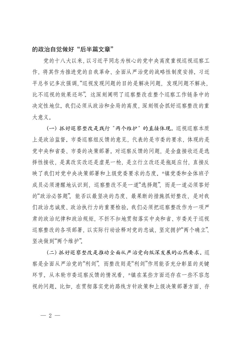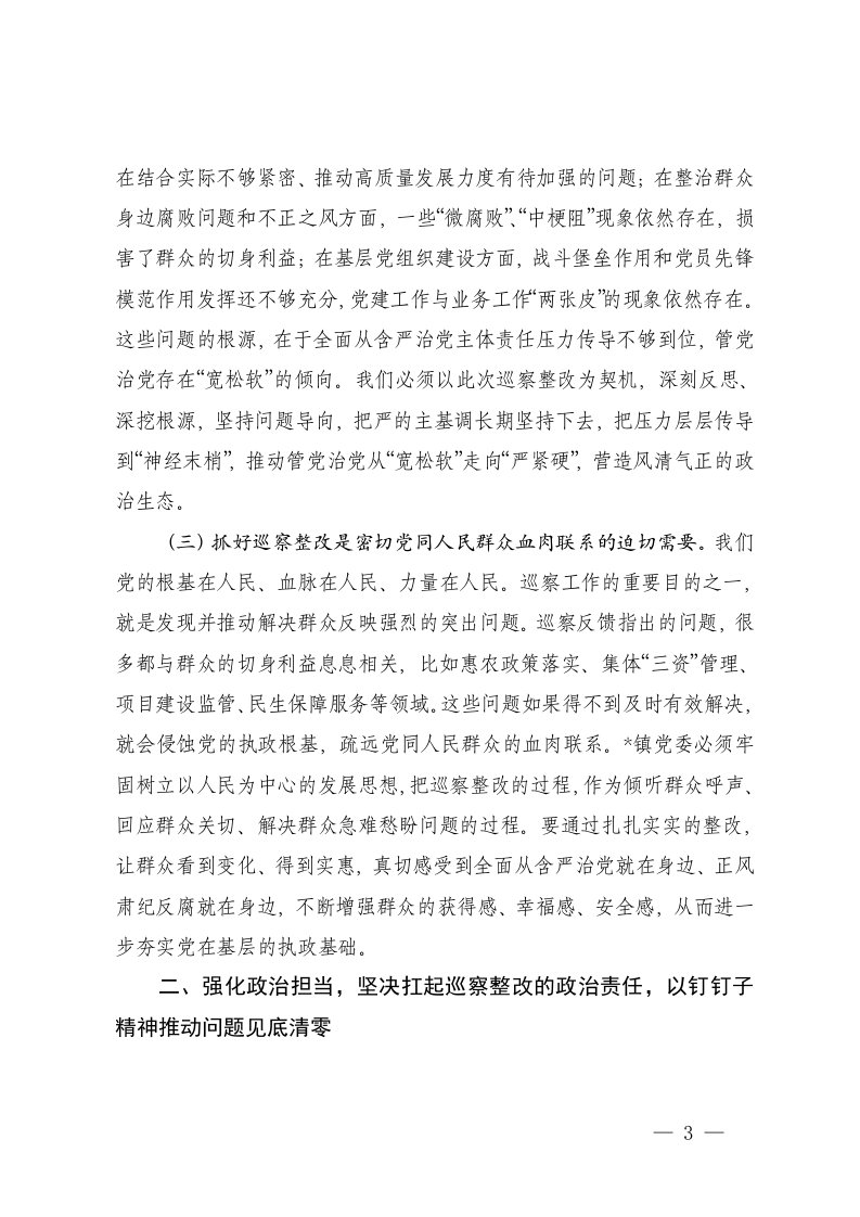 标题:在2025年镇党委巡察整改专题民主生活会上的讲话总结讲话