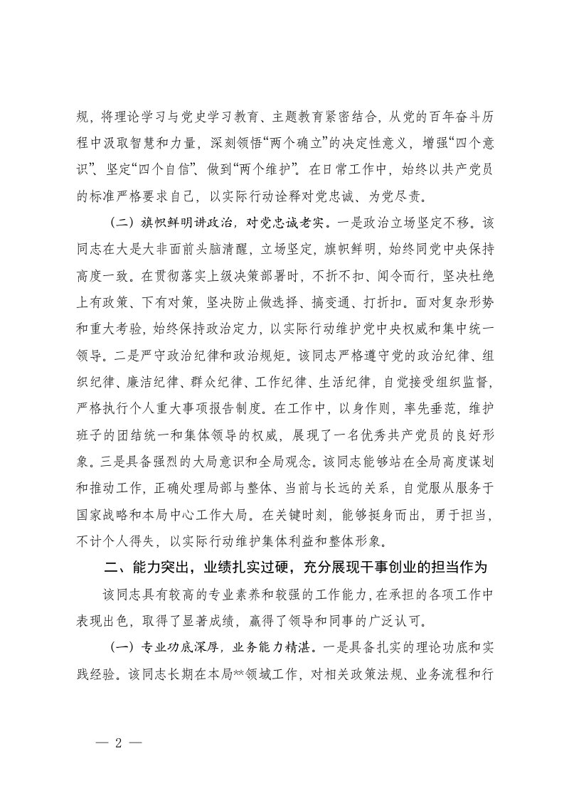 材料2025年-2026年关于拟提拔任用人员的现实表现材料拟提拔干部考察材料材料2025年-2026年关于拟提拔任用人员的现实表现材料拟提拔干部考察材料