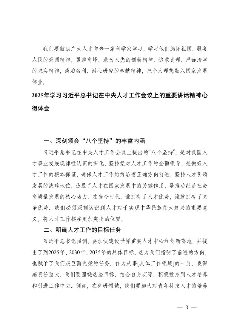 标题:2025年学习习近平总书记在中央人才工作会议上的重要讲话精神心得体会