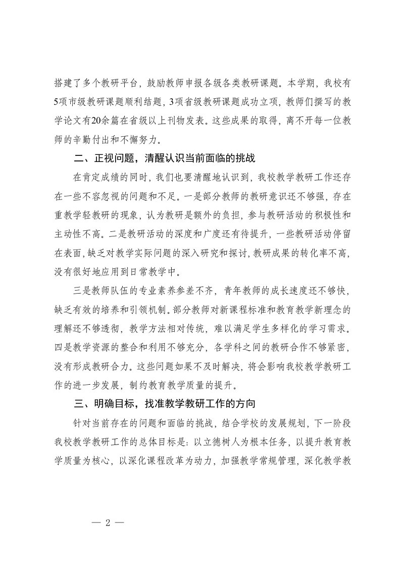 标题:2025年在学校教学教研工作会议上的讲话