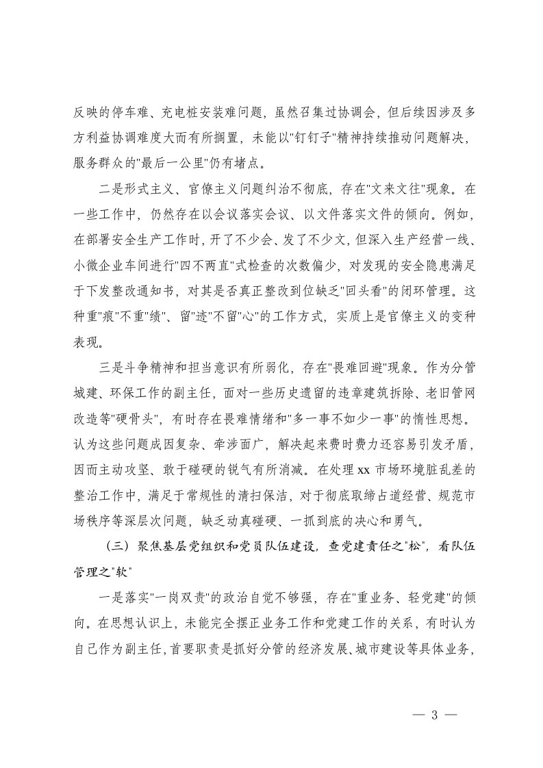 聚焦贯彻落实党的路线方针政策和党中央决策部署情况方面街道办事处副主任巡察整改民主生活会个人对照检查材料