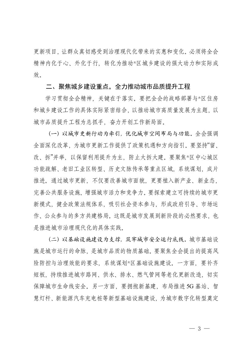 区住房和城乡建设局统计局审计局市委办公室在传达学习10月20日至23日专题会议上的总结讲话