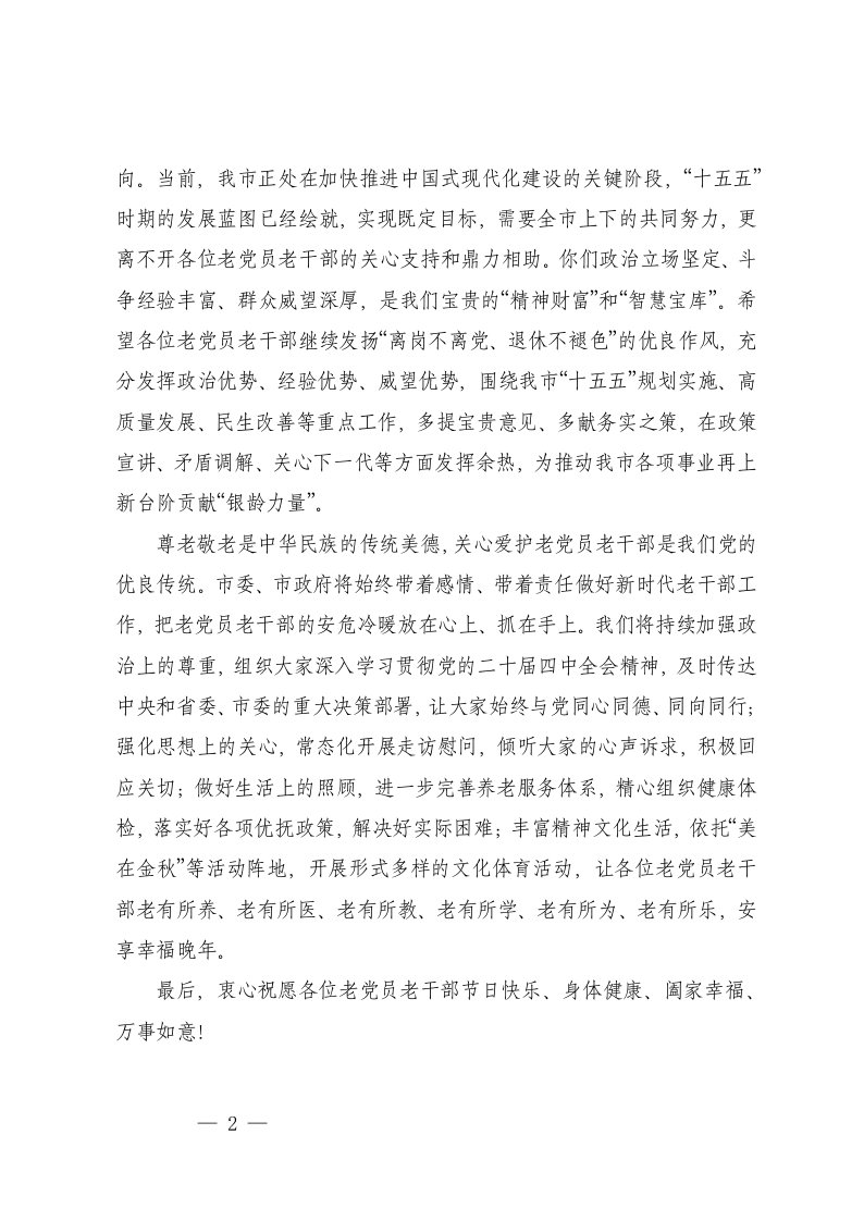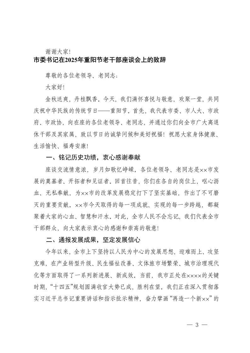 标题:市委书记在2025年重阳节老党员老干部座谈会上的讲话
