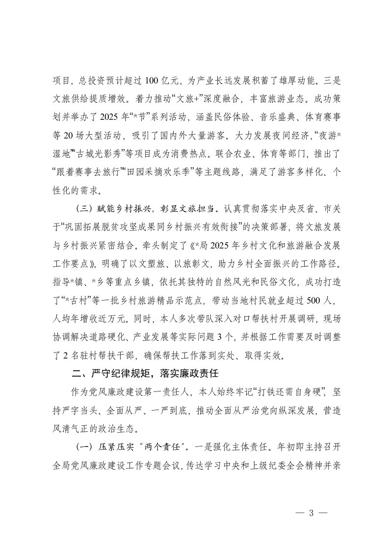 标题:党工委书记局长2025年度个人述职述廉报告