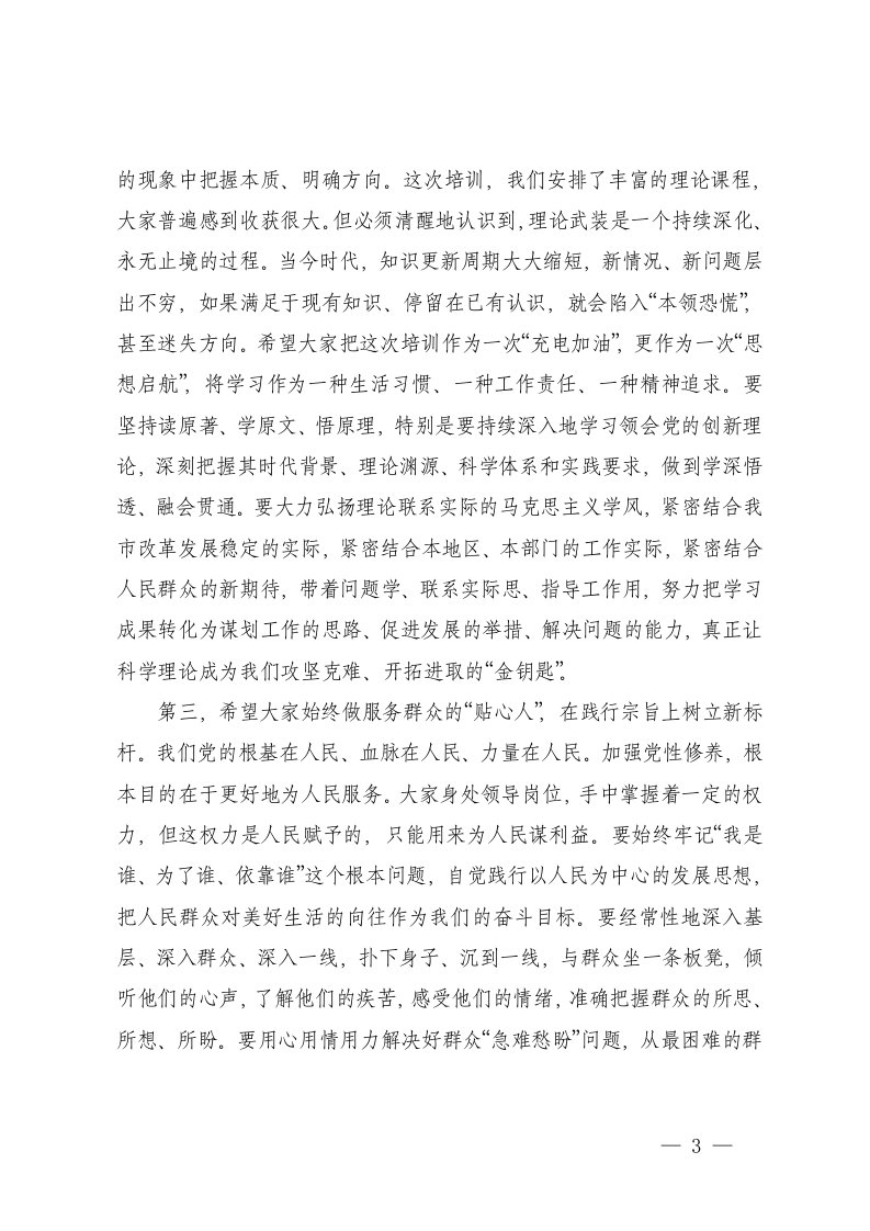 标题:市领导干部市委组织部长在全市党性教育培训班结业式上的讲话