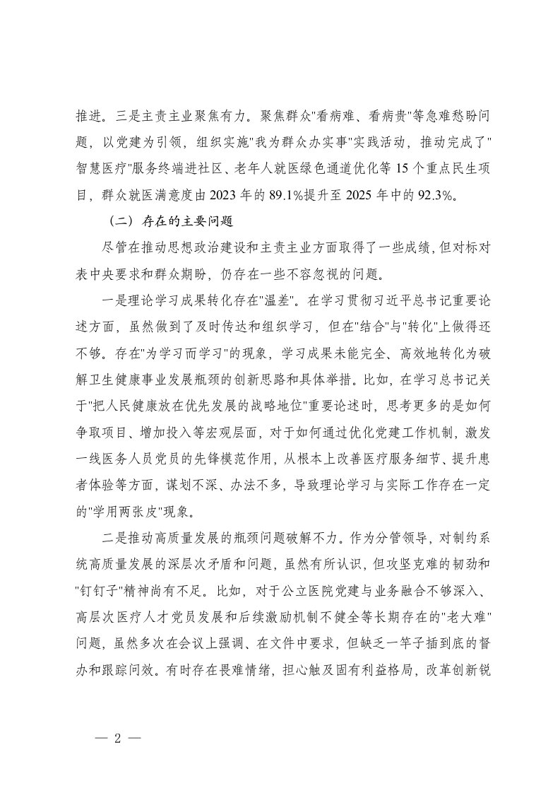 市卫生健康委员会分管党务副书记个人查摆问题清单民政局党委关于作风建设查摆问题集中整治情况的报告