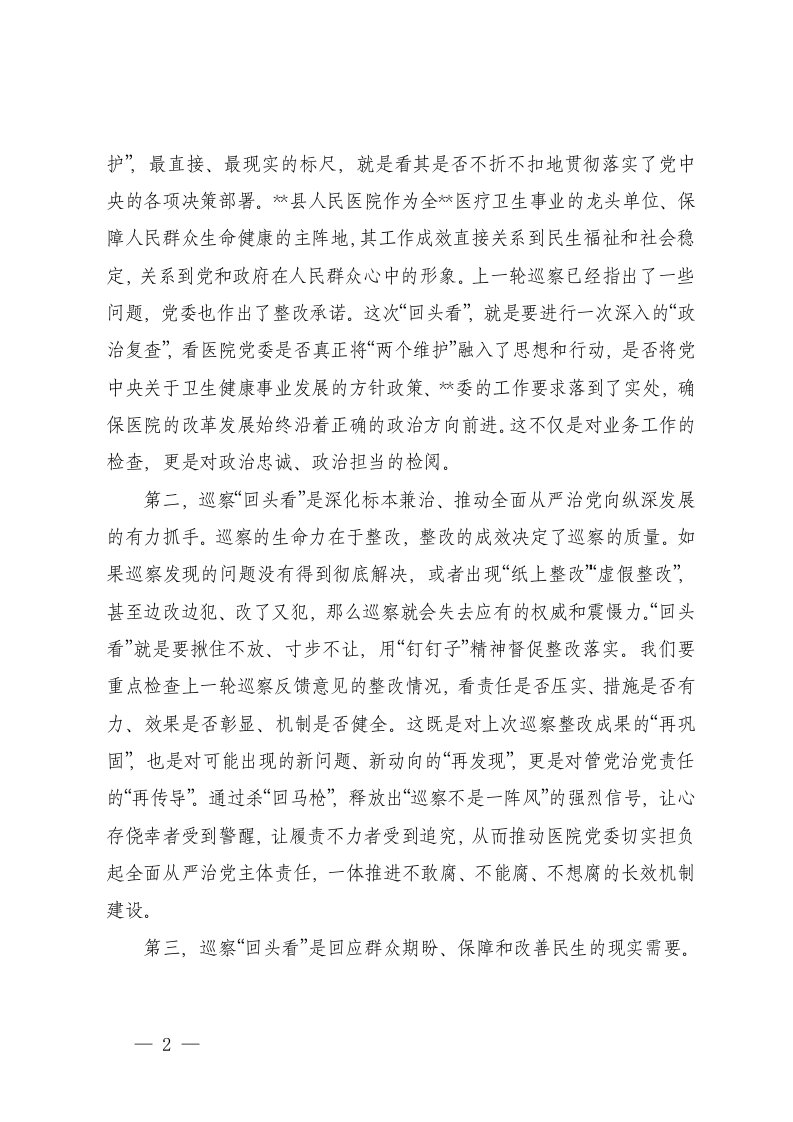 在2025年县人民医院党委巡察回头看工作动员会上的讲话巡察工作会议暨区委巡察动员部署会上的讲话