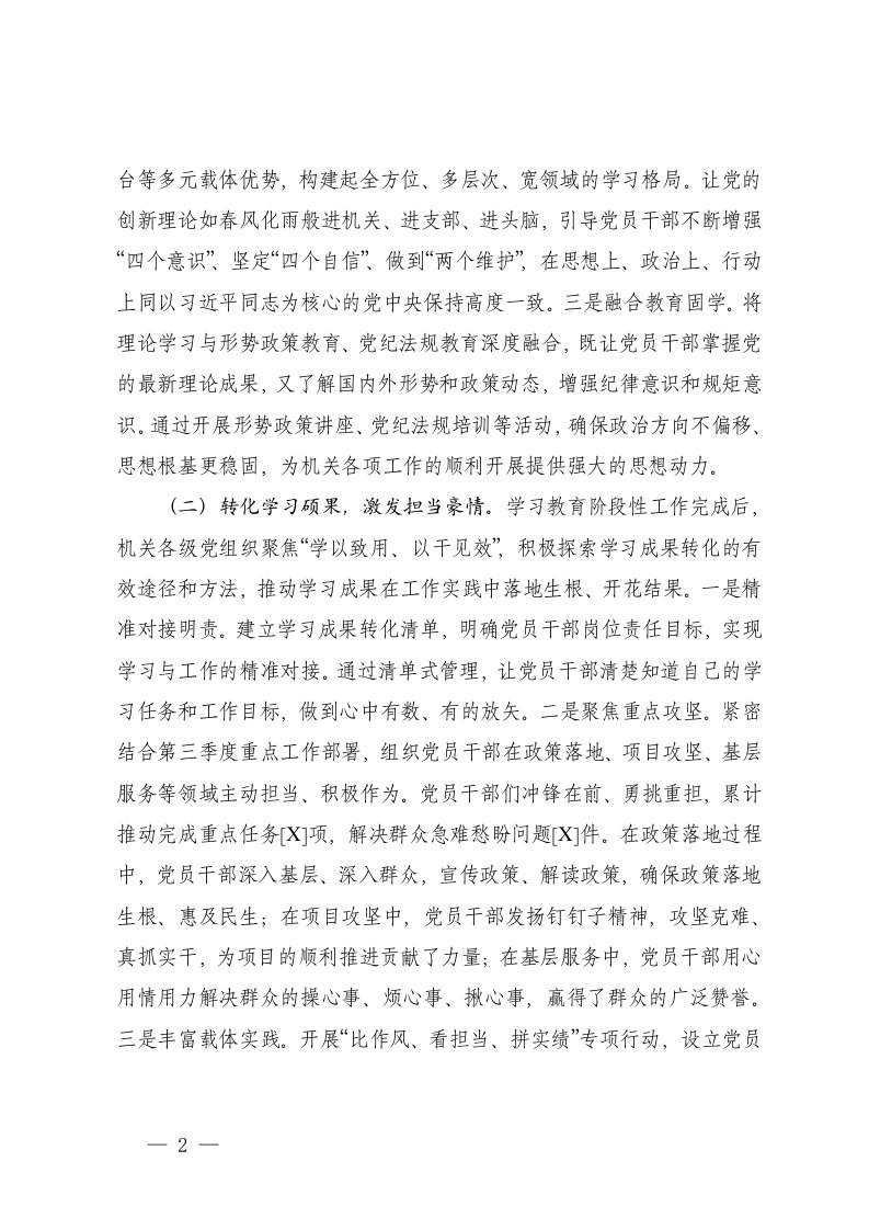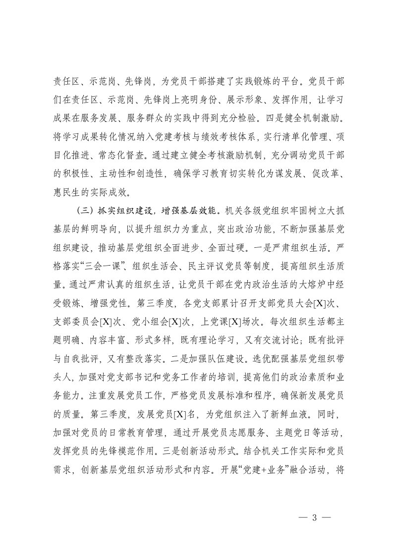 2025年第三季度机关党建工作情况报告前三季度党建工作总结