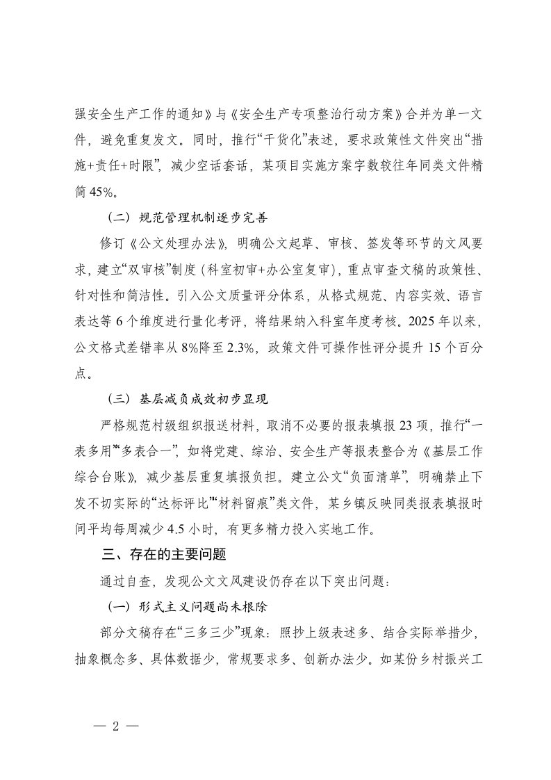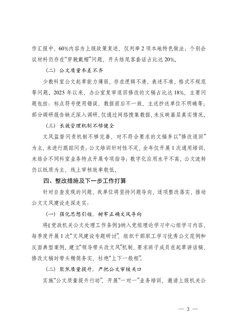 标题:2025年关于公文文风建设情况的自查自纠报告
