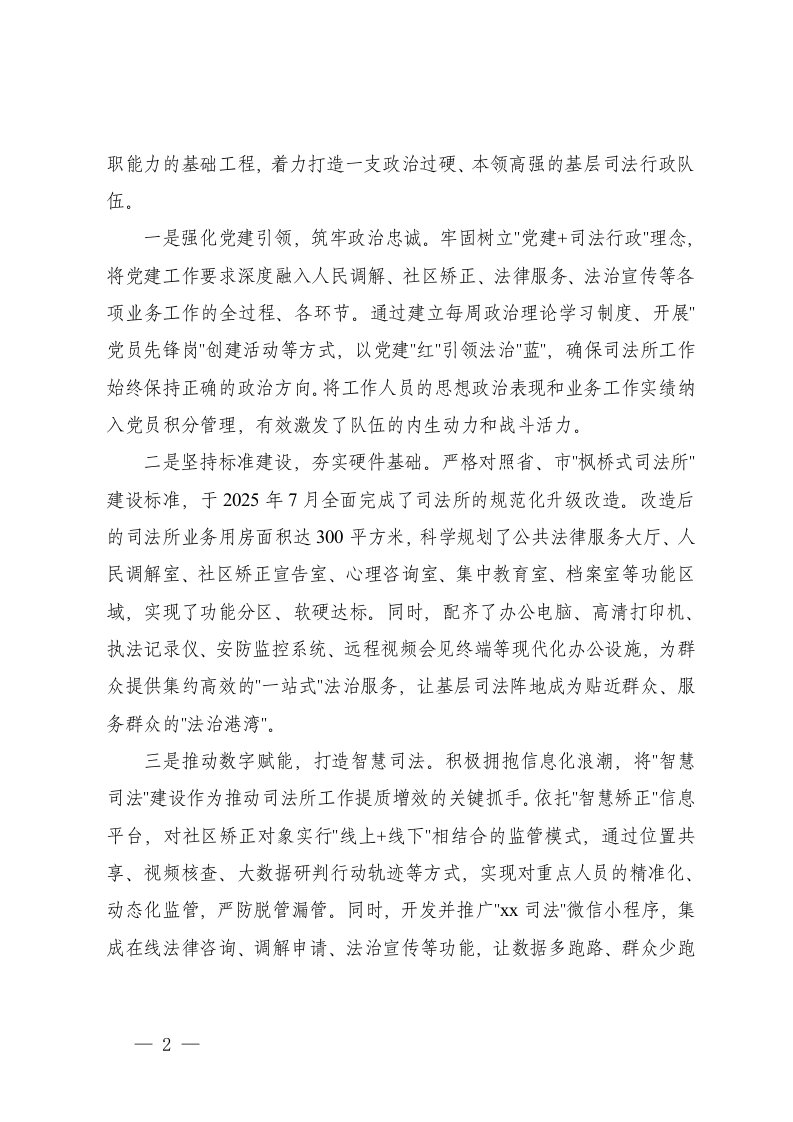 标题:2025年街道乡镇枫桥式司法所建设经验介绍