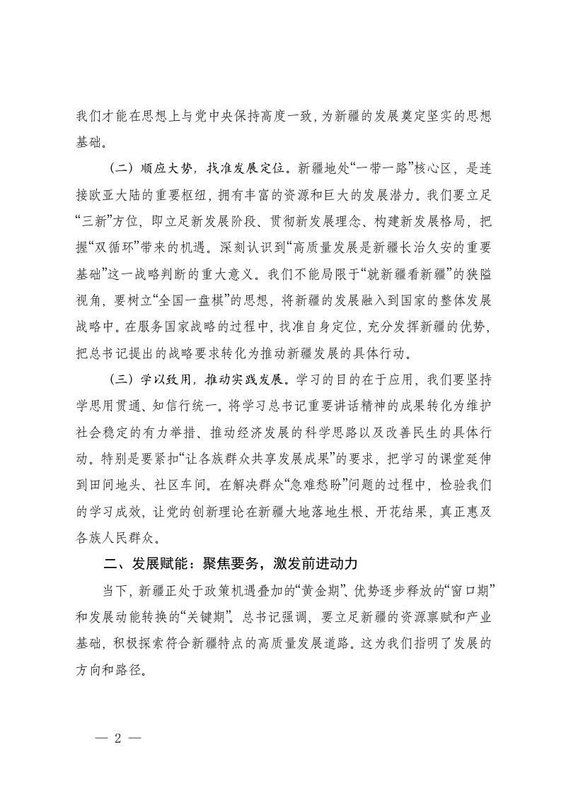 标题:2025年在学习习近平总书记庆祝新疆成立70周年重要讲话精神研讨会上的发言