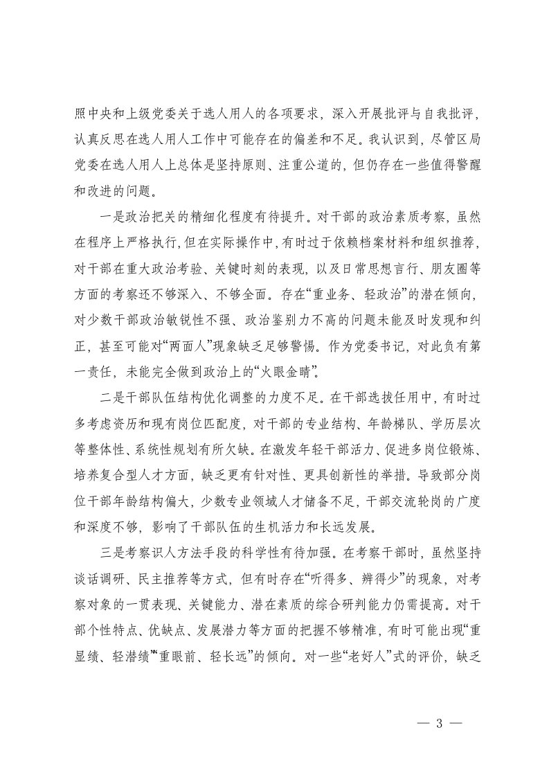 税务局党委书记关于选人用人专项整治党性分析报告选人用人专项检查反馈问题整改落实情况的报告