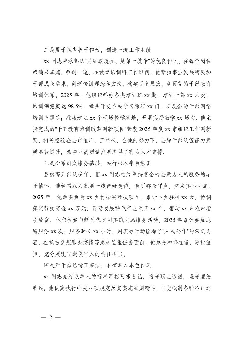 标签: #事迹材料 #退伍 #报告