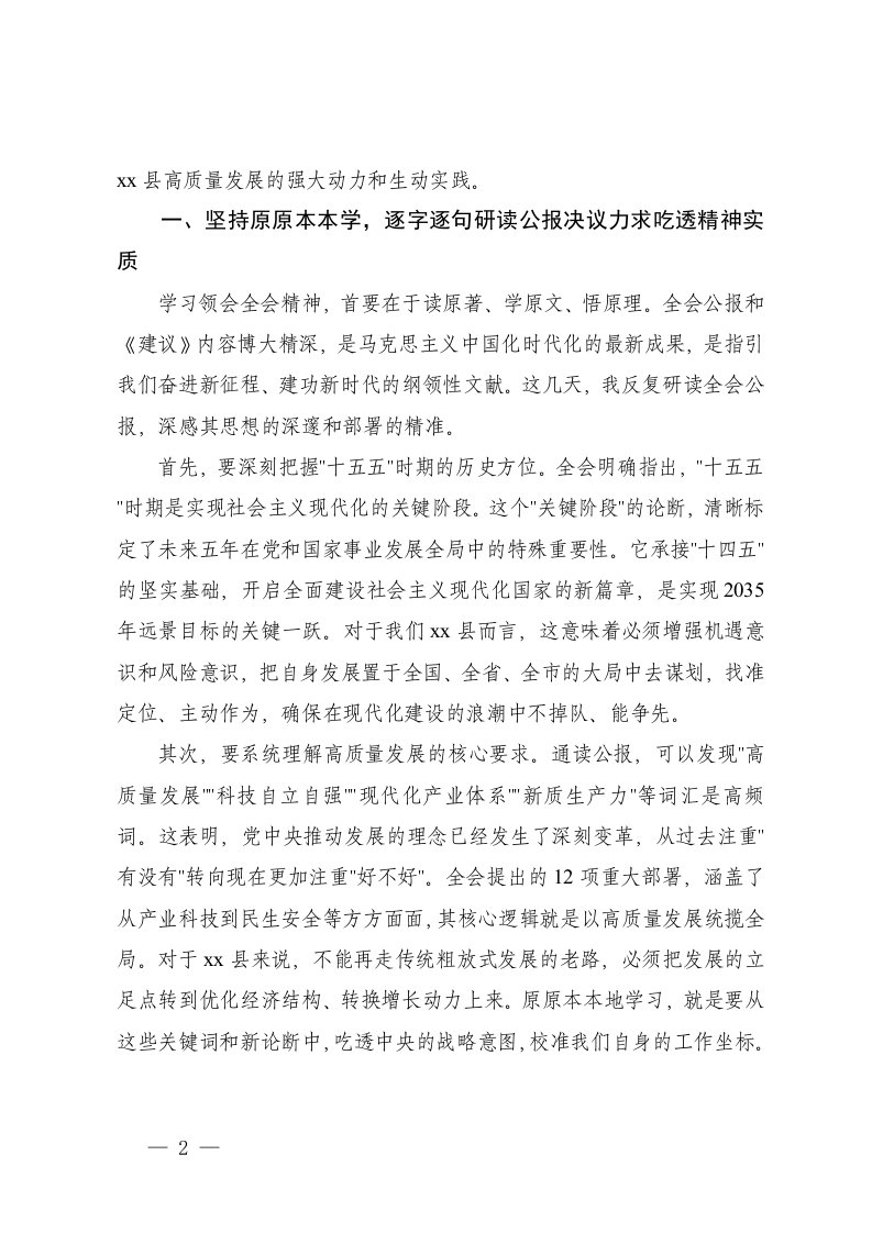 标题:2025年县委副书记在学习贯彻党的第四次会议精神研讨会上的发言材料
