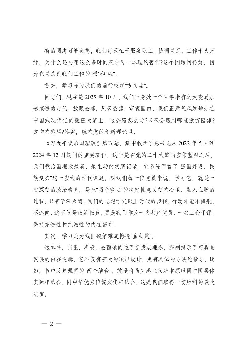 标题:2025年在党支部习近平谈治国理政第五卷专题党课上的讲稿