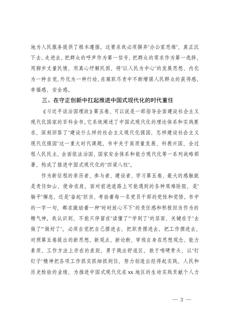 2025年在理论学习中心组习近平谈治国理政第五卷专题研讨会上的发言材料